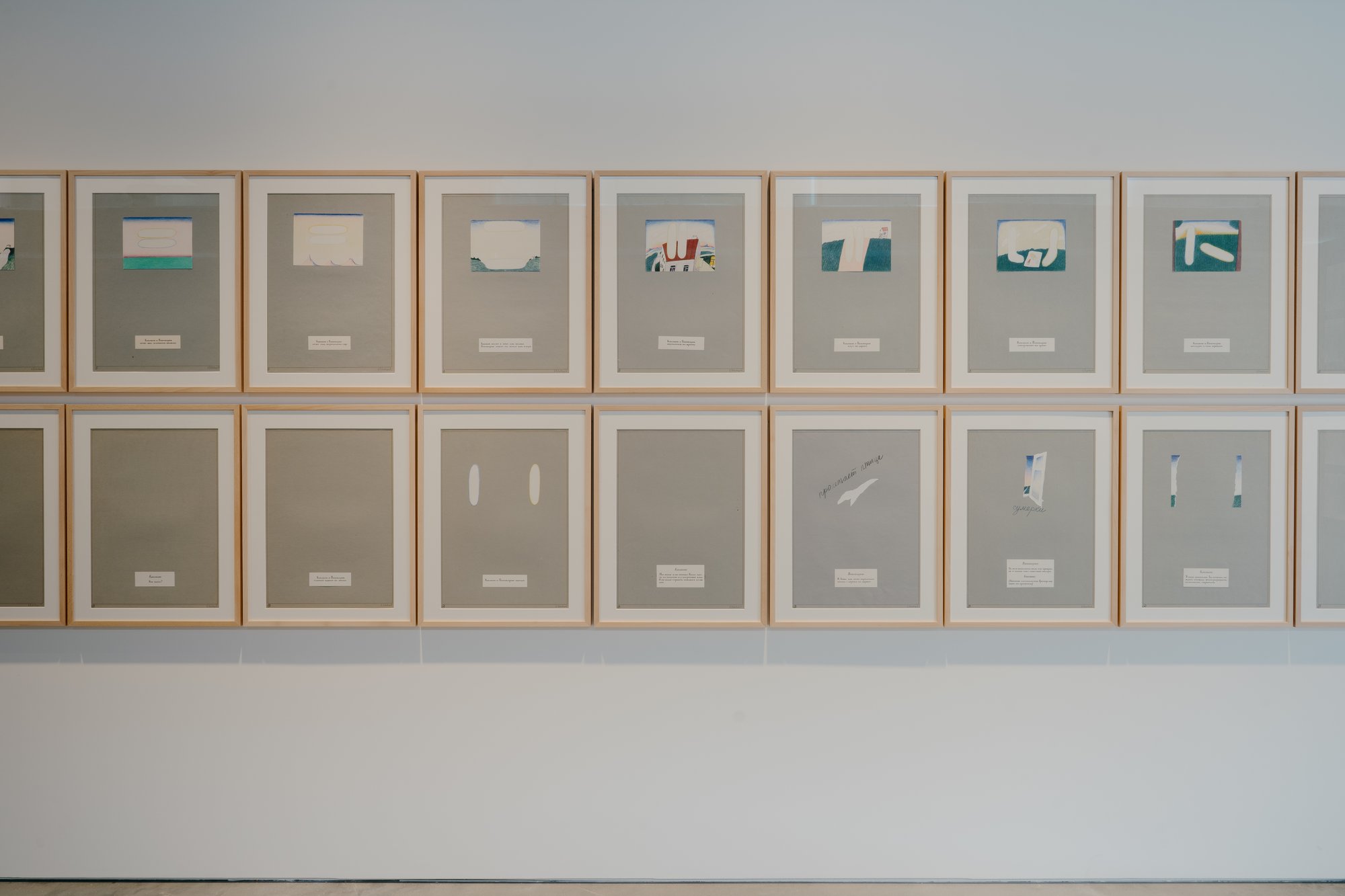Another type of invented characterisation can be seen in Viktor Pivovarov’s (b. 1937) albums ‘Kabakov and Pivovarov’ (1982) and ‘Dramatis Personae’ (1996). The earlier album ‘Kabakov and Pivovarov’ is currently on “open storage” at the Garage Centre for Contemporary Culture in Moscow. In the album, the two protagonists are two elongated ovals resembling text balloons (as in comics, where such balloons typically contain the thoughts of the characters) – empty balloons (one with yellow, the other with blue rims) travel, while the captions tell us, for example, that ‘Kabakov and Pivovarov fly over mountain peaks.’ This story tells of the soul’s wanderings, experienced by dreamers or people who are hallucinating. ‘Dramatis Personae’ immerses the viewer in the world of the Moscow Conceptualists, depicted both symbolically and allegorically. These albums reveal the origin of Moscow Conceptualism in Surrealism, with its themes of dreams and mystery.