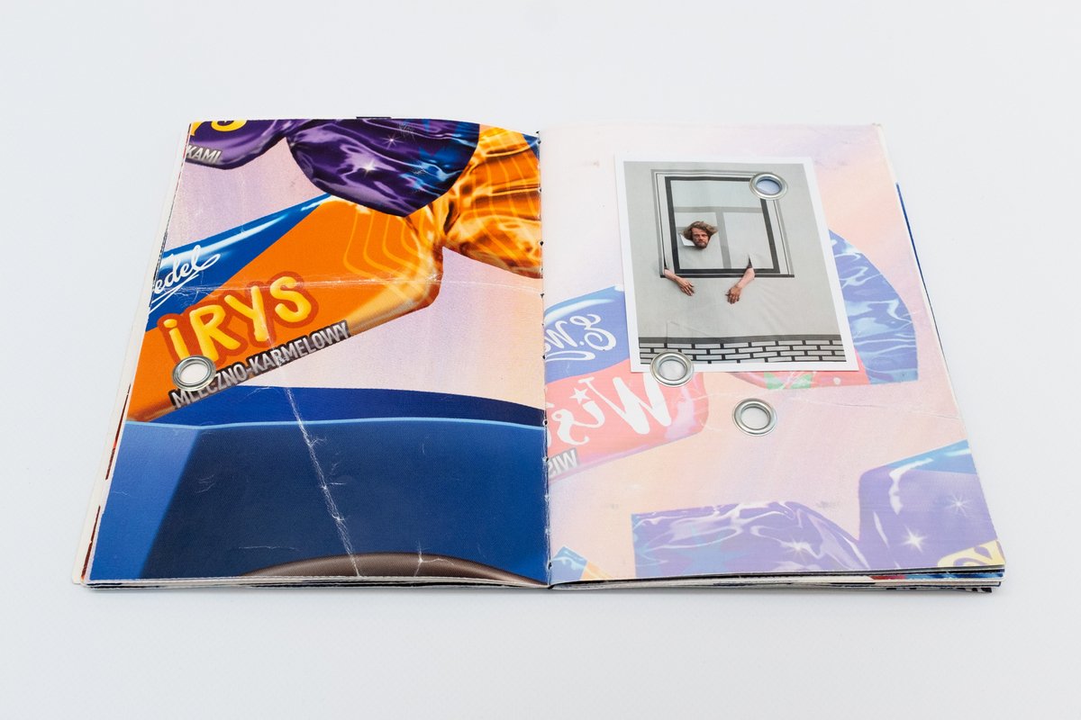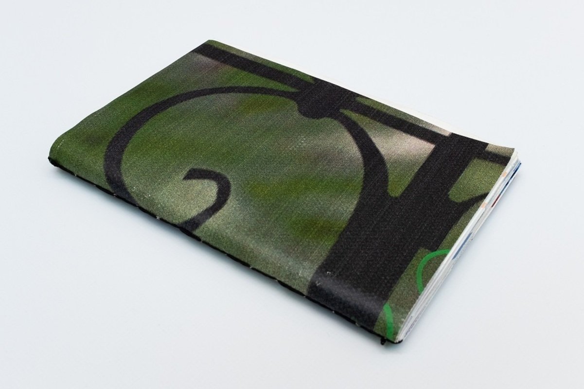 Igor Ponosov (b. 1980), a St Petersburg–based artist widely recognised for his research into graffiti and street art, also works extensively with artist books. Over the past five years, he has produced at least five such works, all executed using collage—a method that is equally central to his wider artistic practice. ‘Through Images’ (2020), one of Ponosov’s most notable artist books, is held in the collection of the Garage Museum of Contemporary Art. The work is sewn together from ready-made materials—specifically fragments of fabric typically used for street banners. The metal eyelets of the banners are left visible, while photographic images are directly affixed to the surface. Another version of ‘Through Images’ forms part of the collection of the Street Art Repository in St Petersburg.