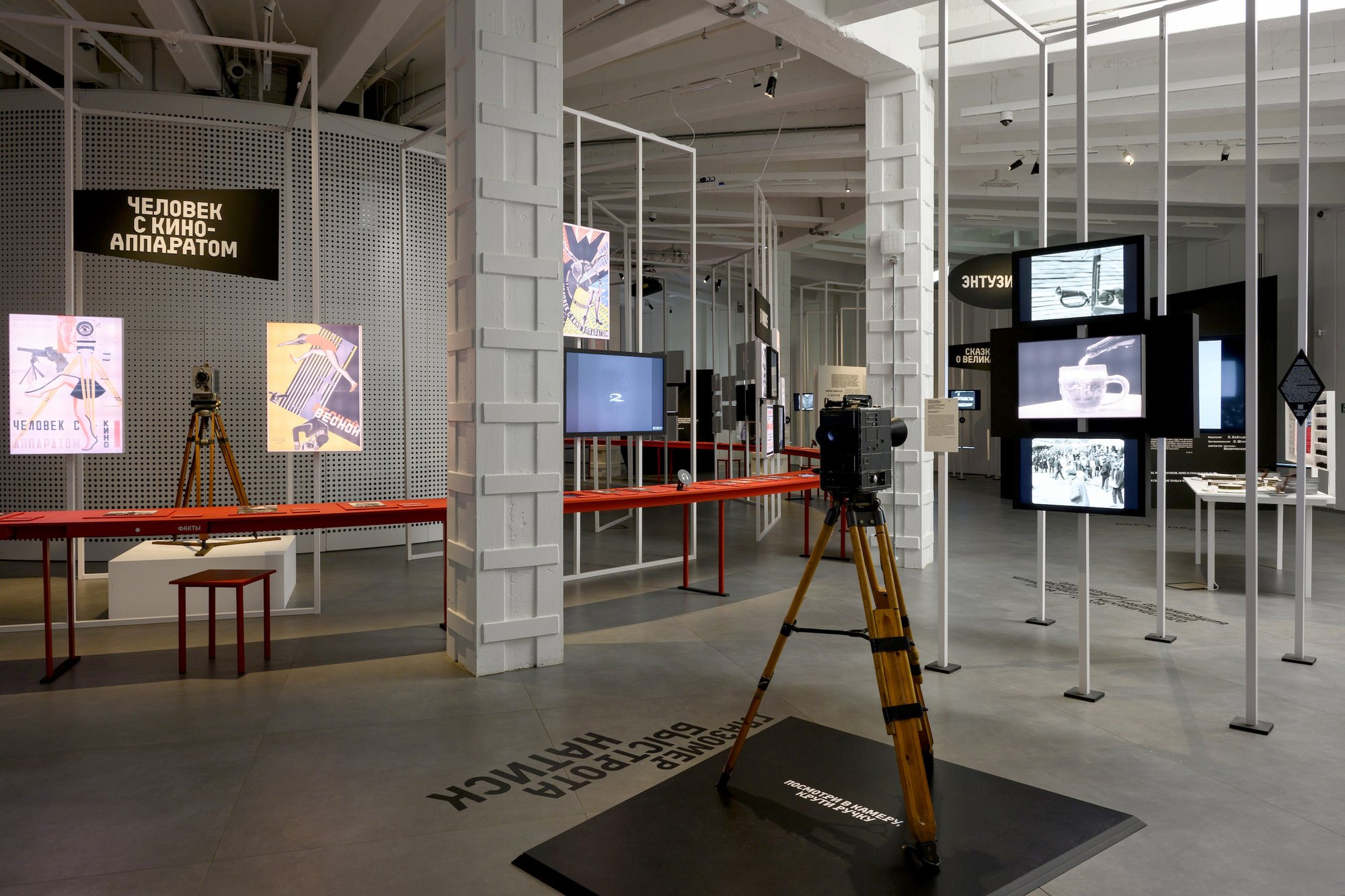 The exhibition, curated by Polina Streltsova, Polina Pribytkova and Konstantin Dudakov-Kashuro, is conceived as an immersive attraction. Alongside the standard photographs, film excerpts and documents, visitors can listen to texts written by Dziga Vertov (1896–1954) and see his photographs animated through artificial intelligence. At an editing table, they can explore the principles of montage, and they can also film a short clip on a smartphone using prompts from a bot developed specifically for the exhibition. All of this is lively, vivid and engaging; all of it will appeal to anyone who decides to visit the show, which runs until 26 July; and all of it reflects the ideas of Dziga Vertov, now arguably the best-known Soviet film director of the 1920s.