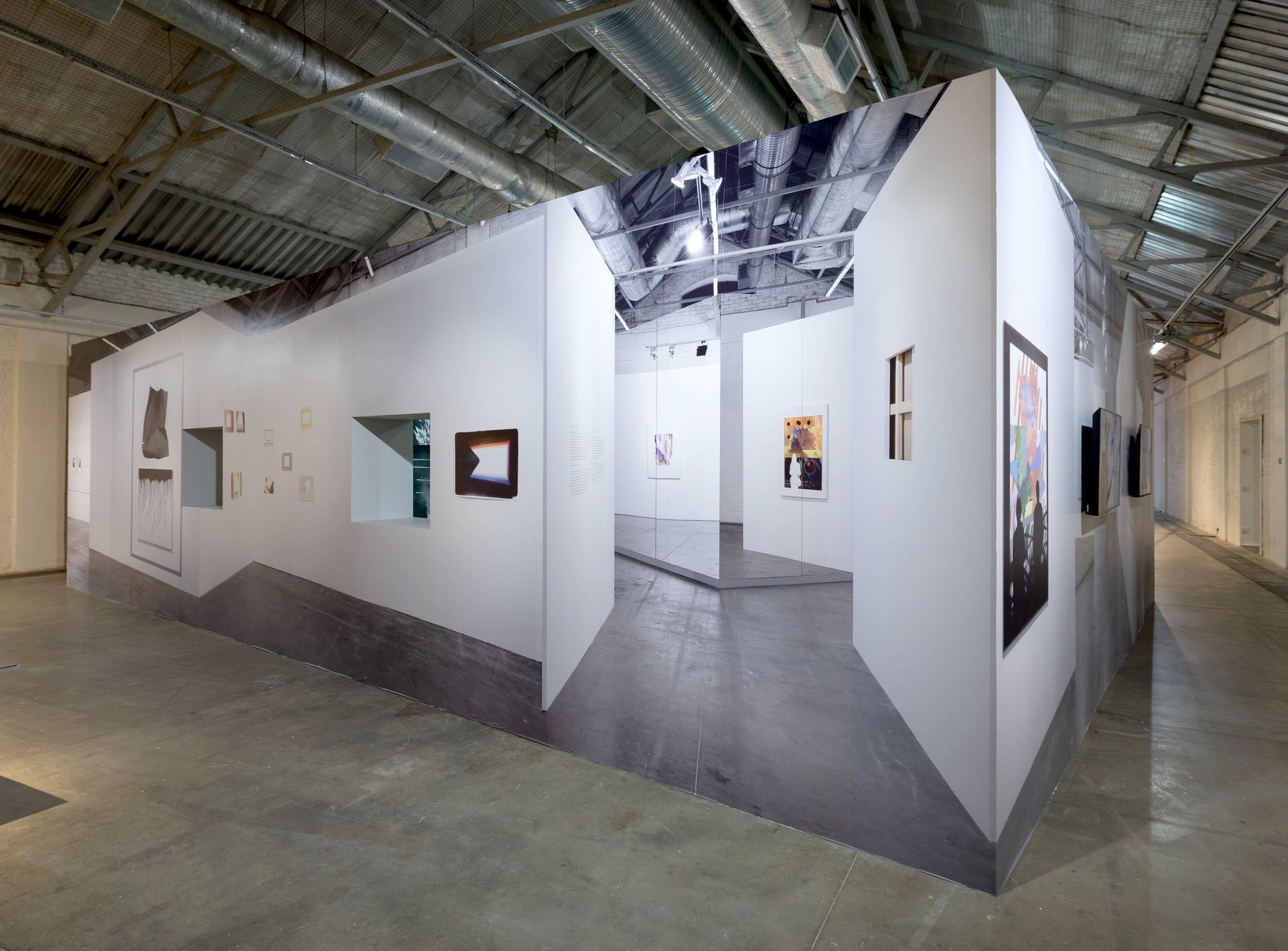 Viktor Misiano invites us to start our journey through the exhibition from the second floor. Accommodated throughout a cavernous space, one installation leads on to the next by artists Vladimir Logutov (b. 1980), Yan Ginzburg (b. 1988), Irina Korina (b. 1977) and Sergey Sapozhnikov (b. 1984). Vladimir Logutov has created a closed pavilion with small windows which the visitors cannot enter. There are photographic prints on the exterior walls which document a 2017 exhibition ‘Next Level’. This show was devoted to the life cycle of an artwork, from its inception, creation in material form, to packaging and installation in a gallery. These traces of the life of an art object are thus found on the external contours of one’s memory. There are also television screens showing conversations with various artists about questions of perception and expertise. Inside the pavilion, there are paintings on the element of fire, a theme which Logutov is currently exploring. Black-and-white works can be observed through the windows. Mirrors expand the space. Thus, the present pushes back the boundaries of the past and one’s memory of it.