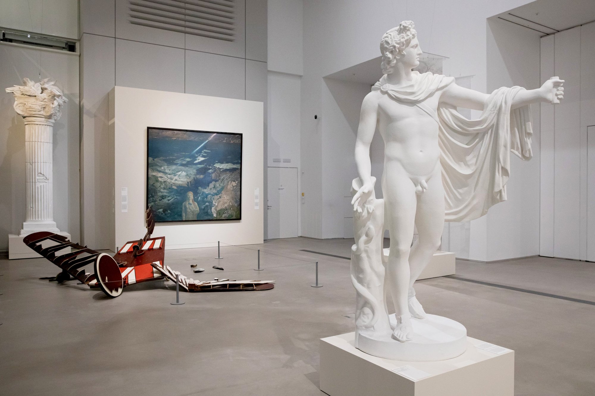 In the White Hall, the GES-2 curators have gathered numerous homages to antiquity. Alongside pastiches and artefacts by members of the ironic, postmodernist art group the New Academy – an underground artistic community from Soviet Leningrad (now St Petersburg) – the display also includes original works that are iconic within Russian cultural history.
