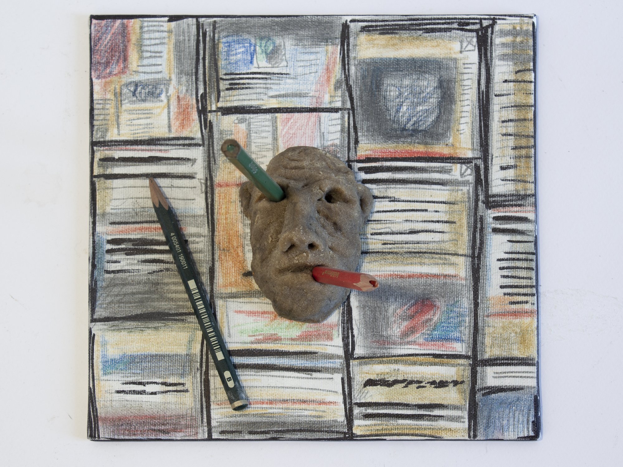 Yet the second part of the exhibition proves that Kuzkin has not exhausted the possibilities of using bread as a medium. Tucked discreetly on the shelves behind the gallery's reception counter are works that address current events more directly. While in exile, the artist began combining bread pulp with other materials. In a small piece from the ‘On the Ruins’ series, a human figure is placed atop debris — a tiny yet powerful monument that requires no explanation. In the ‘Cubes’ series, he combines bread pulp with soil. The cubes of human figures and earth are the same size and can be stacked on top of each other. “They are completely interchangeable,” the artist noted, rearranging the cubes in front of visitors on opening night. The metaphor becomes even more poignant when you learn that the soil comes from a cemetery where soldiers killed in the First World War were buried.