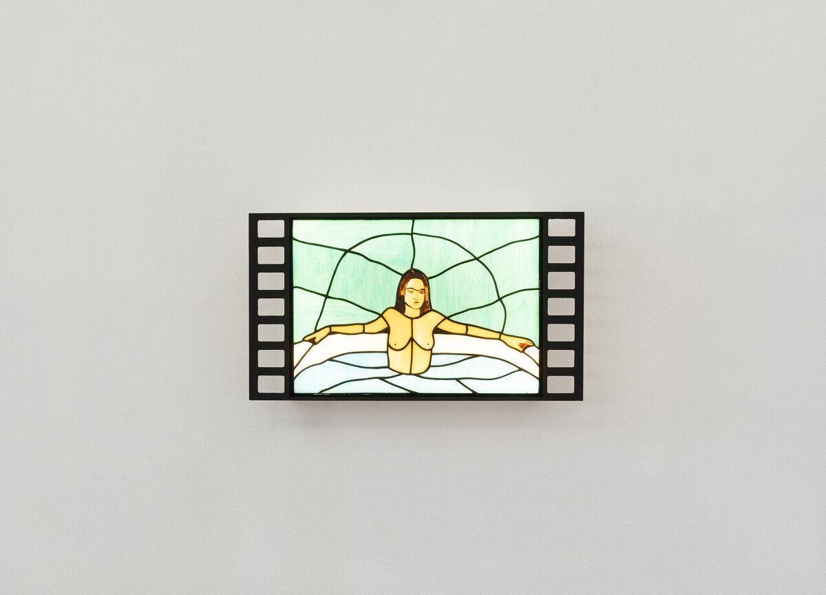 In contrast, David Apakidze (b. 1998) approaches the question of identity through a markedly different yet equally compelling lens. His solo exhibition at Tbilisi’s Bukia Vakhania Gallery engages with historical memory, religious iconography, and cinematic imagination. Working primarily with stained glass, Apakidze draws upon the visual legacy of the screenplay ‘The Martyrdom of Shushanik’, by Sergei Parajanov (1924-1990), a project that was never finished due to censorship