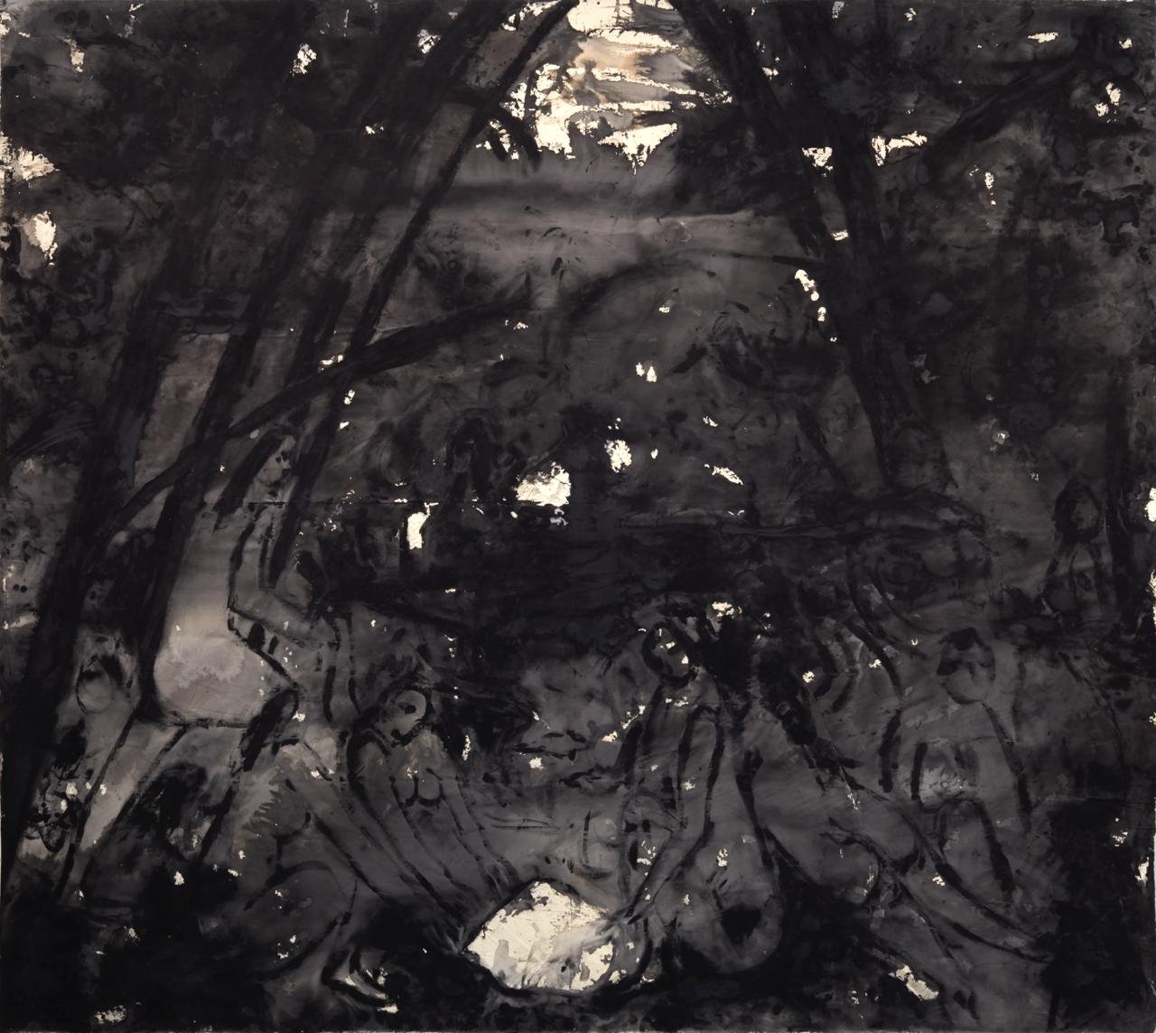The large, impressive canvases that line the walls of the newly renovated halls evoke a strange sense of dislocation, as if you have been suddenly transported back in time or to an alternative reality where the tragic events of recent years never occurred. This mystery has a simple explanation: all the artworks come from private collections. The donors include the V-A-C Foundation, the AZ Museum, real estate developer Vladimir Semenikhin and his wife Ekaterina, the Terebenins, who are renowned for their passion for Indian art, and Anton Belov, the former director of the Garage Museum of Contemporary Art in Moscow, who left the country around two years ago. The most recent artwork is a photograph taken by Alexander Gronsky (b. 1980) in 2023. It depicts a nondescript residential block in Moscow sinking into the early evening gloom, with a construction crane bearing the Russian words ‘God with us!’ in the foreground. Most of the artworks in the exhibition explore the relationship between humans and their surroundings, whether man-made or natural. In some of the works of art, such as porcelain sculptures by AES+F depicting illegal migrants and wealthy tourists frolicking together in the Mediterranean Sea, the landscape is barely present. The subject matter of this series – the almost miraculous rescue of desperate refugees from drowning at sea – subtly rhymes with Samolet’s lighthouse sculpture on the rooftop. However, it is difficult to determine whether Victoria resembles a lighthouse showing the way to a safe haven or a ship trying to find its way through the turbulent waves of history.