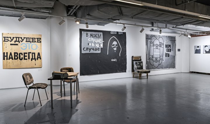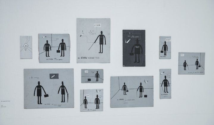 Here one finds the famous ‘In My Case Under No Circumstances’ or "Smrt je smrt", and, in fragments, his trick alphabet with masterpieces like ‘G – Trees’ or ‘Sh – Fence’, and works created shortly before his death, late pieces like the self-portrait with the inscription “Wit Against Illness”. The exhibition comprises paintings and works on paper as well as furniture and kitchen utensils painted by the artist including objects from various projects, ranging from the 2007 ‘Layerism’ exhibition at the Cheremushki apartment gallery to the IV Moscow Biennale in 2011.