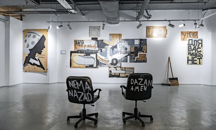 This kind of rationality — which, thanks to Chtak’s scathing public remarks, was often mistakenly taken for cynicism — combined with his drive for practical realisation, rollicking absurdism, and relentless resistance to home-grown critical hermeneutics, both anticipated and, in several cases, directly inspired the art that emerged in the second half of the 2010s. Sadly, as his health declined, he could no longer fully participate in these developments and spent more time working quietly in his studio. Yet whenever he mounted an exhibition, he delivered with full force. What else can one say about the PGT project (2022) at the Fabrika Centre for Creative Industries, where the show had to be viewed from a balcony and seemed to enact a return to the very origins of his practice — primitivism, self-styled Dadaism, and a wholehearted “come what may” spirit. Even in difficult times, he never stopped savouring life and playing the hooligan; in the case of such an irrepressible absurdist, it could hardly have been otherwise.