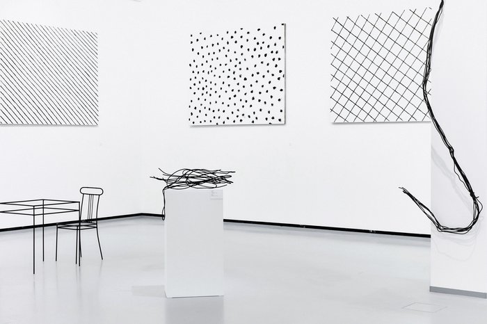When observing exhibition spaces like art salons, or outpatient rooms and clinics constructed by Anna Zholud from metal rods, one recalls Sol LeWitt (1928–2007) or Donald Judd (1928–1994), who emphasised object identity dissolution. Their works deliberately demonstrate the disinterest of objects in serial production, where uniqueness is absent – a trait both honest and advantageous. On the other hand, Roginsky’s still lifes and domestic scenes come to mind, along with Zlotnikov’s abstractions that seem to adapt the patterns of 1960s and 1970s Soviet panel flats, integrating complex systems with cybernetics, reflecting a unique Soviet experience of abstraction.