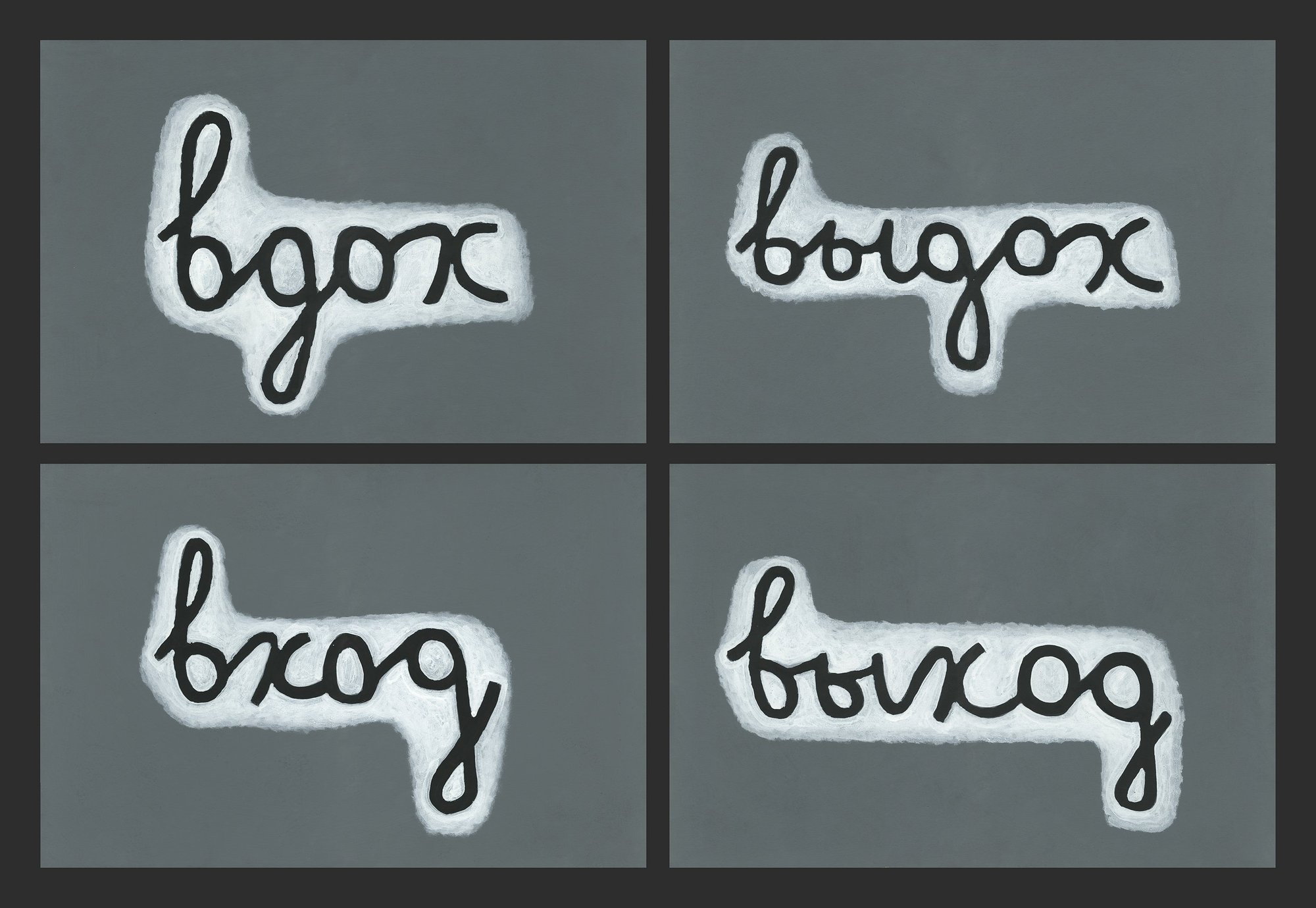 The third leitmotif is the word. For Anna, words also cry out, plead for help, sometimes desperate and filled with existential longing. Her words correspond, in my opinion, to the use of words in Erik Bulatov’s (b. 1933) paintings and the poetry of Vsevolod Nekrasov. Here again we turn our gaze to our own Russian tradition of poetry in unofficial art.