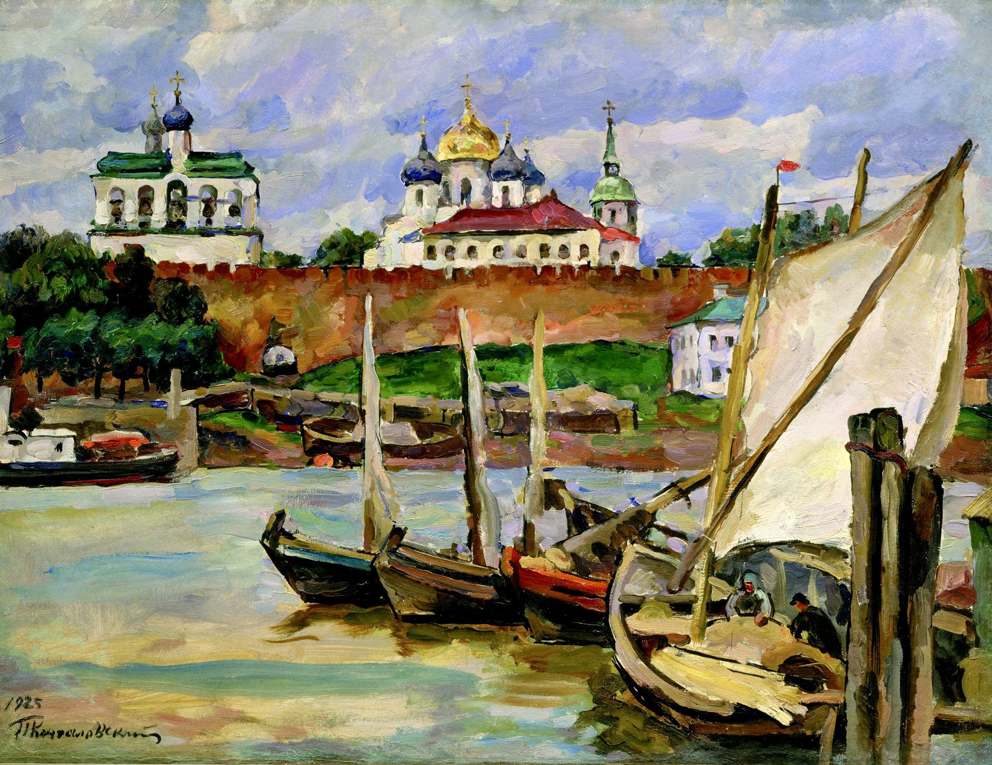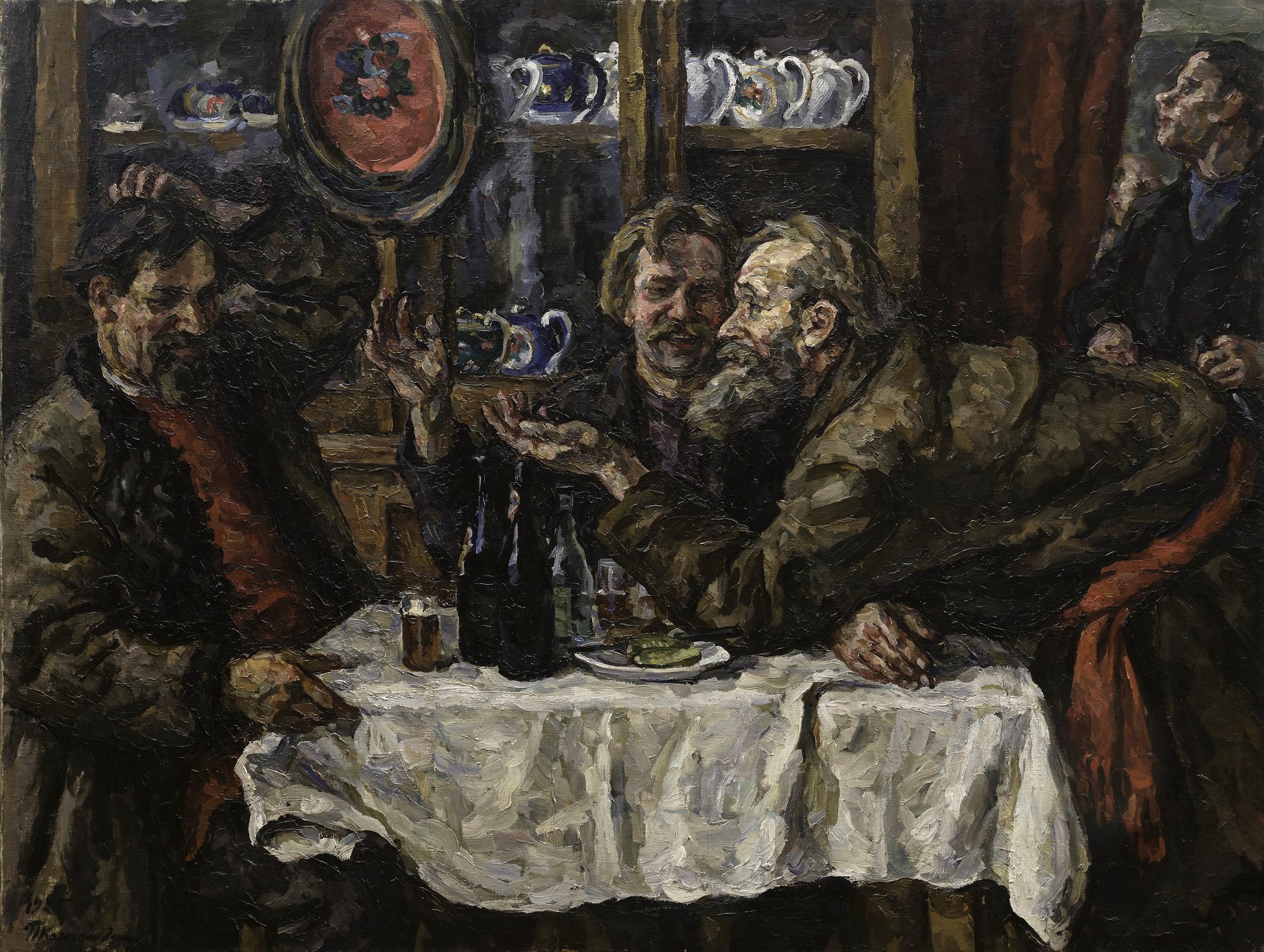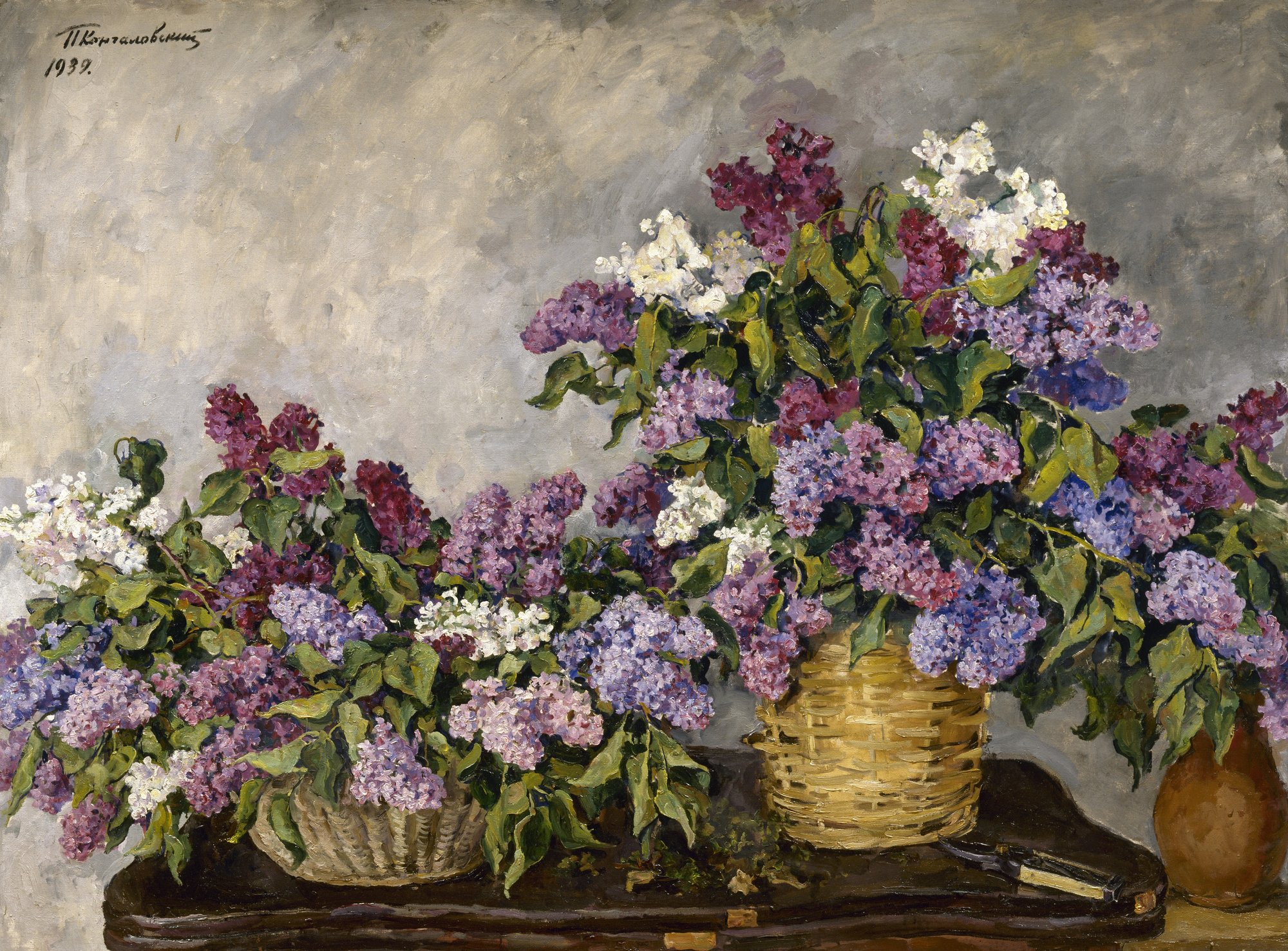 Konchalovsky was not inclined toward narrative painting: the genres of portrait, landscape, and still life that brought him fame define a strictly personal world focused on resolving painterly problems. He always fills the entire surface of the canvas, giving equal attention to all elements and parts of the composition (striking in a painter with a modernist background), and paints even the background with evident enthusiasm. His full-bodied, sensuous realism is rooted in the physical core of things.