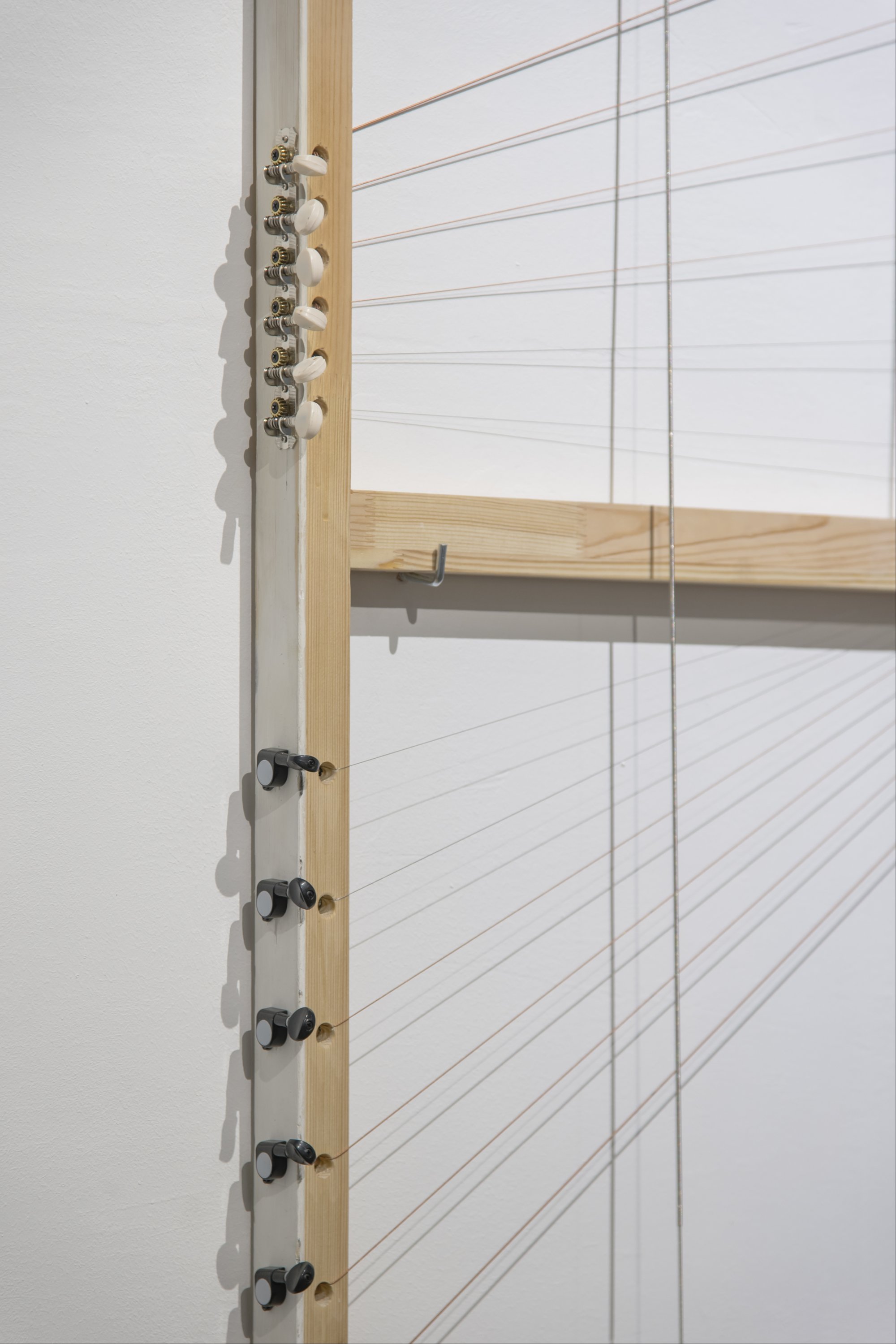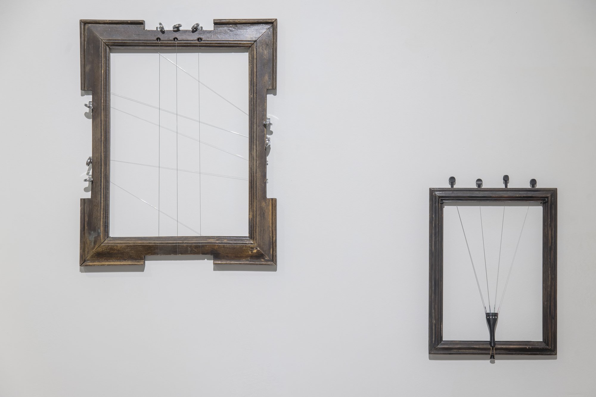 One of Grankov’s object series, ‘Alla musica’, consists of recognisable components of classical instruments – strings, fingerboards, tuning pegs – reassembled into structures resembling empty picture frames. The works readily invite comparison with John Cage’s 4'33" (1952), itself inspired by Robert Rauschenberg’s ‘White Paintings’ (1951) – white monochromes in which Cage famously perceived “airports for the lights, shadows and particles,” just as his own composition created a temporal frame in which any involuntary sound could acquire the status of music.