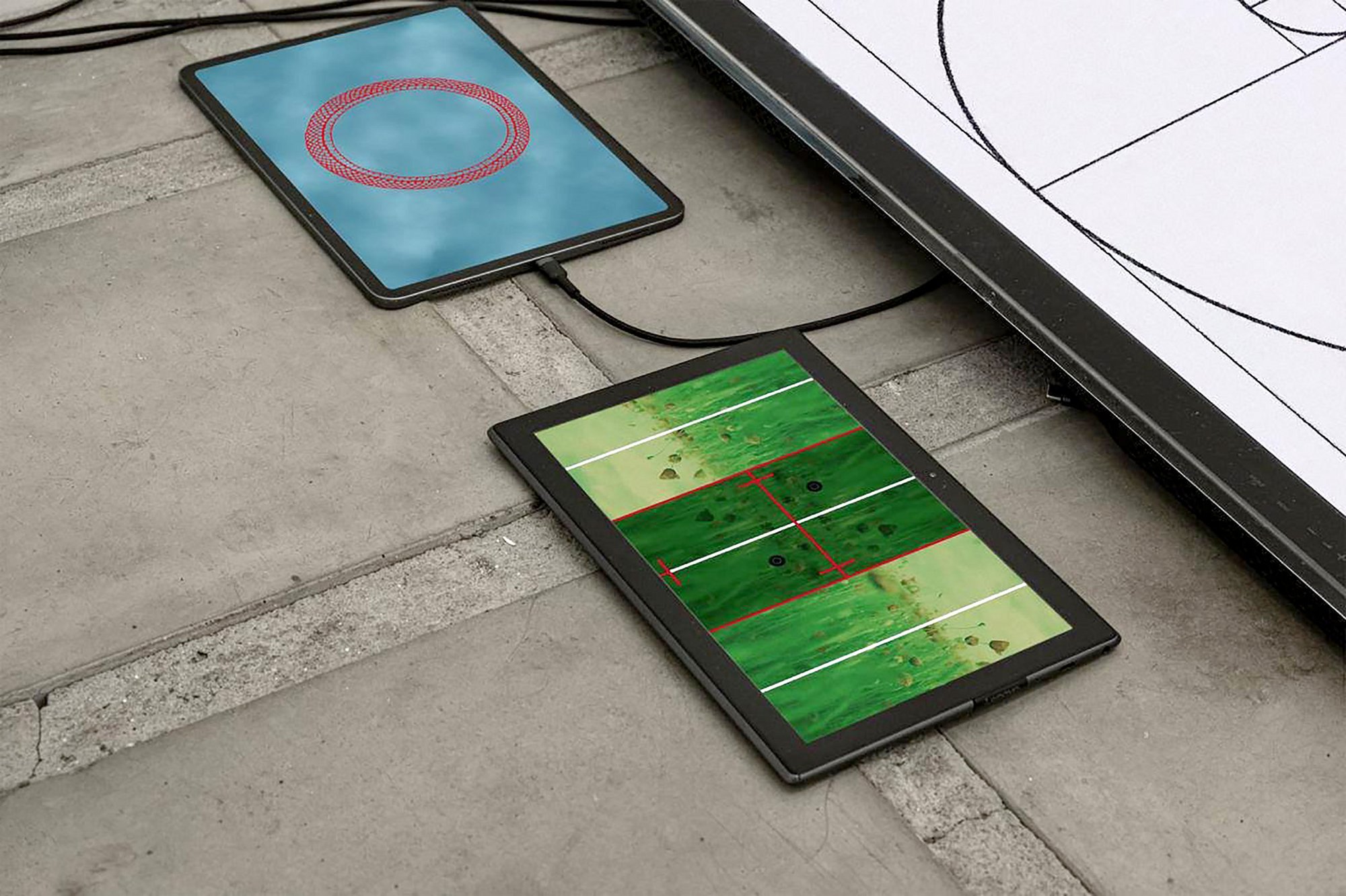 Where does the title ‘surveyor’ come from? The artist explains: “In a sense, the surveyor is me, because as an artist within this project I work remotely, living in Paris, not seeing the works themselves or their final assembly in Moscow in person, and essentially also engaging in measurements, spatial design and so forth. Rooted in the surveyor’s craft – where practical geometry originates – the exhibition is dedicated to geometry as practice. And in a sense the viewer probably also becomes a surveyor. The surveyor is a character who unites, and this metaphor generally captures the essence of my project.”