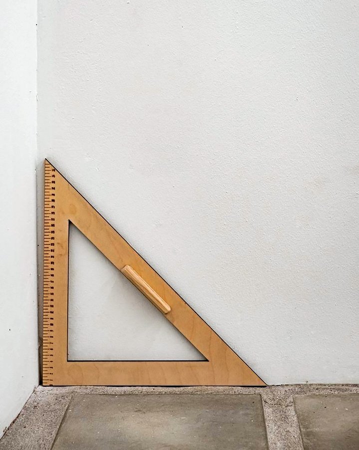 One object at the exhibition particularly attracted me: an office set square is leaning vertically against the wall. One side, ruled with little squares, rests on the floor. Imagine this: the length of this side of the set square matches exactly the length of the floor tile. Such an improvisation indeed seems to promise the delectable prospect of observing harmonic proportions everywhere and in everything. I recalled a scene from Bertolucci’s film ‘The Dreamers’ where the action takes place in the home of a French intellectual during the liberal revolution of 1968. A simple naive American student has come to visit him and his children. Whilst the father, resembling Barthes and Foucault, holds forth about laws and civil society, the student take out a lighter and begins to apply it to all the objects which are on the table. Everywhere there is a system of geometric relationships of parts to a whole, individual segments to a length, radius to diameter. In the end, interrupting the professor's clever speeches, the young American exclaims “isn’t this a miracle – everything, despite our will, is interconnected, subject to harmony and equilibrium!”