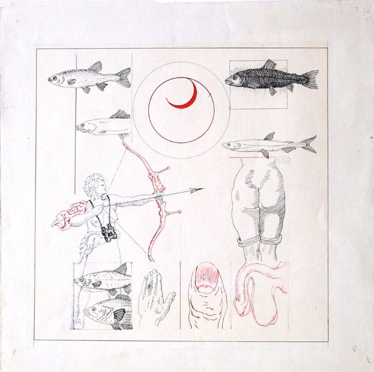 Together they created several landmark works merging sound, image and conceptual play. Their first collaboration, ‘The Red Wagon’ (1991) – dedicated to victims who perished in the Gulag – featured Tarasov’s record ‘ATTO III Drumtheatre’ which was placed inside the wagon itself. The installation was first shown at Kunsthalle Düsseldorf in 1991 and later at the Museum für Angewandte Kunst in Vienna in 1994. This was followed by ‘Concert for a Fly’ at the Château d’Oiron in France and the ‘Red Pavilion’ for the Venice Biennale in 1993, sketches of which are now on view at the Radvila Palace. Later in the same decade was ‘C’est ici que nous vivons’ at the Centre Georges Pompidou and ‘Music on the Water’ at Schloss Salzau, Kiel.