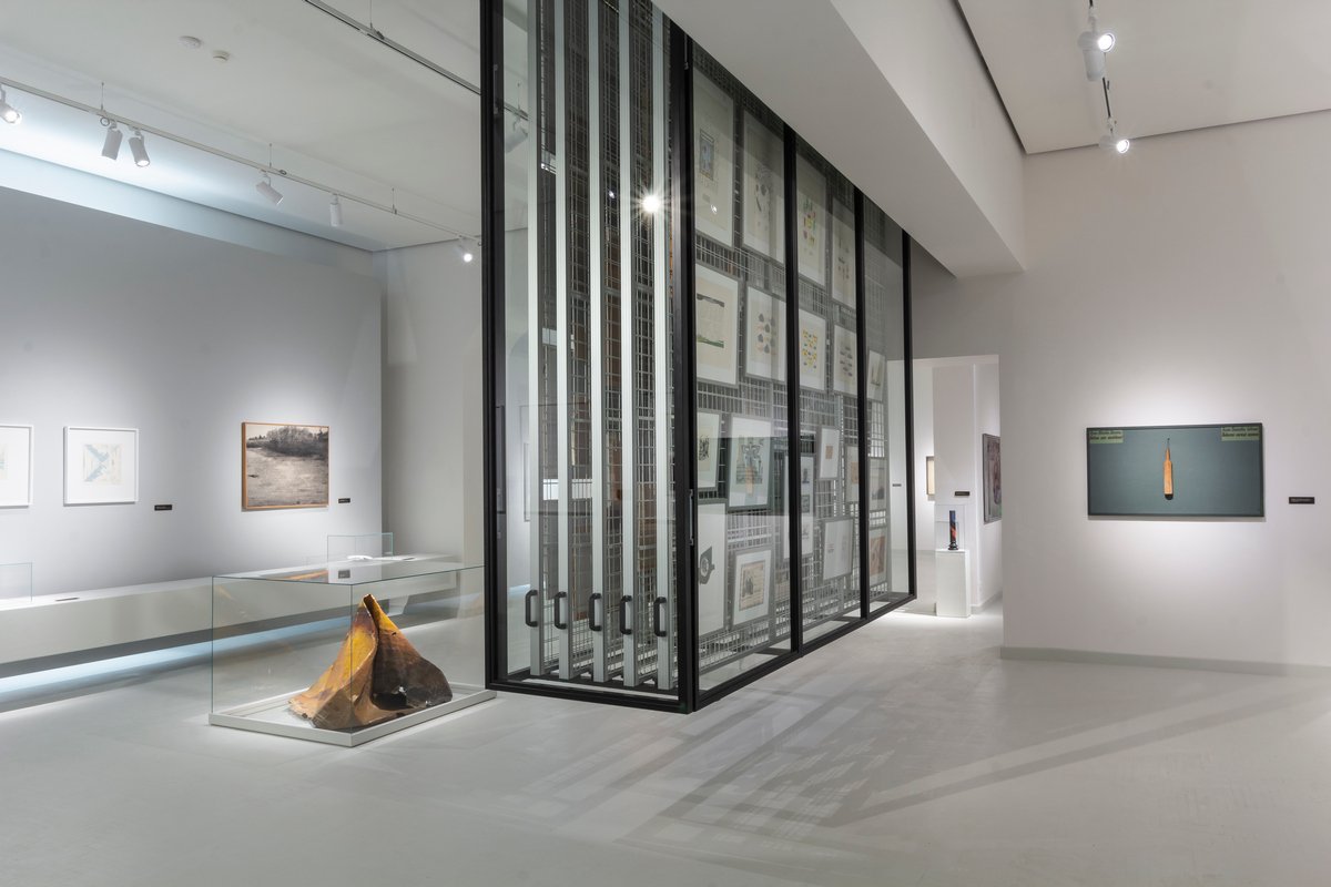 The following chapter, ‘The Silent Modernists of Lithuania and the Rebels of St Petersburg,’ shifts from geometric explorations to expressionism and dark humour. The Lithuanian “silents” – Valentinas Antanavičius (1936–2024), Vincas Kisarauskas (1934–1998), Linas Leonas Katinas (1941–2020), and Raimundas Sližys (1952–2008) – voiced dissent through metaphor and irony, while the St Petersburg circle, including Vladlen Gavrilchik and Yuri Dyshlenko, turned the absurdities of Soviet life into surreal poetic acts. With its open spaces and interlinked corridors, the exhibition architecture, designed by Petras Išora and Ona Lozuraitytė, amplifies this dialogue, bringing air and movement that mirrors the artists’ own interconnected worlds.